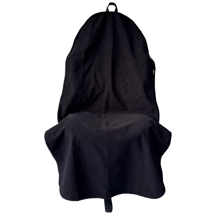 Front car seat towel measures 140cm from top to bottom & 74cm wide, is a universal fit and fits most vehicles. Back Seat Hoodie measures 140 from top to bottom & 150cm wide. We suggest you measure your car seat to confirm fit.